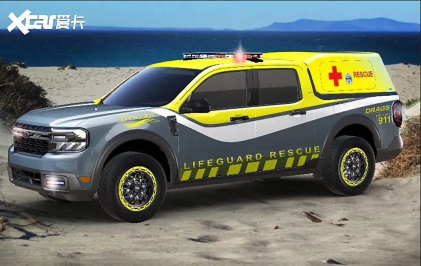 这是一辆来自奥克斯纳德结折高中战奥克斯纳德局的联手作品,基于Maverick皮卡打造的海滩营救观点皮卡。DRAGG Maverick装备福特授权的配件如东西厢、后备厢、车顶止李架战横杆等。这款紧凑型皮卡还装备了水上动支架、挡泥板、Cover King品牌防水前座套、遮阴板战越野射灯。