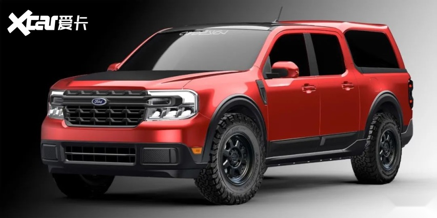 Air Design 正在SEMA展上推出了2022福特Maverick Lariat SuperCrew ® FX4 ®越野套件,该套件装备了Air Design USA设想的挡泥板、车门饰条战尾门贴花造型套件。机能升级包罗带有玄色镀铬的猫背式排气安装、1.5英寸的升高套件以及装备31英寸全地形轮胎的18英寸轮辋。