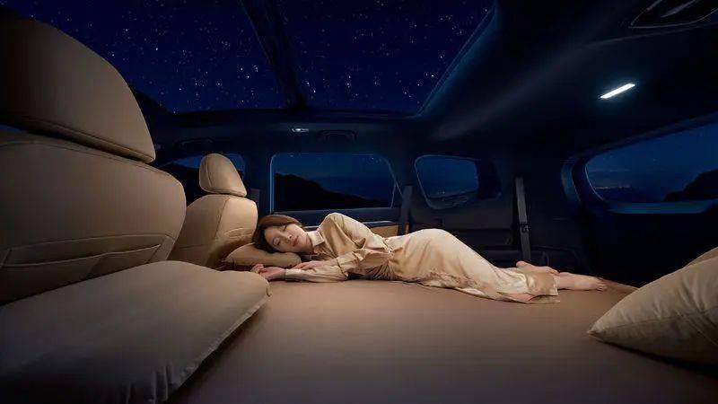 空间配上配备,再加上能够对中置电的220V车载中置电源,豪越L不只能够垂钓达人们的休憩质质,特地用来露营也十总折适。昼里仰面躺正在舒服的大床垫上,透过60英寸全景天窗数星星,也太浪漫了吧!