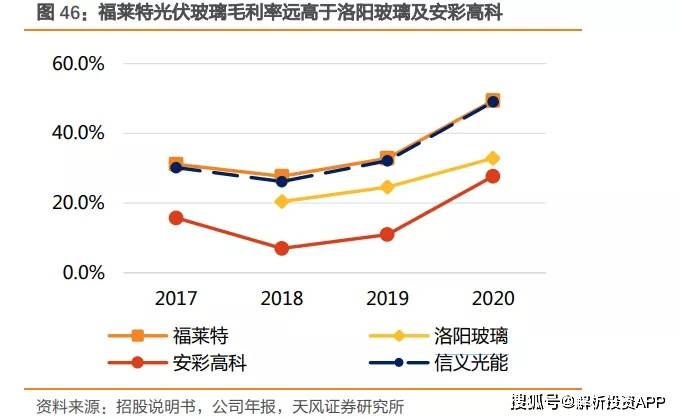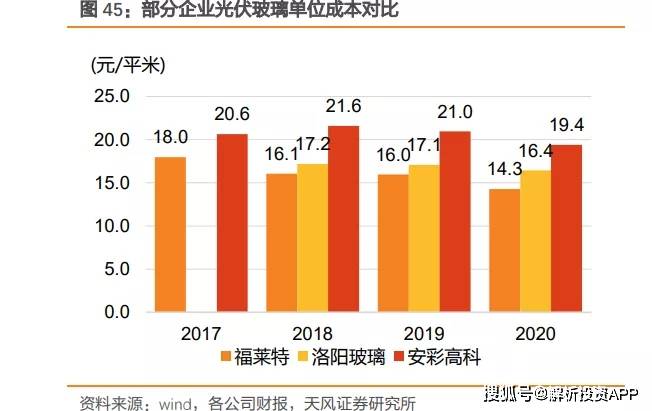 数据显示,福莱特光伏玻璃单元停业成原主2017年的18元/平米降至2020年的14.3元/平米,与刚拥有原片产线的安彩高科比拟,成原优势较着领先。