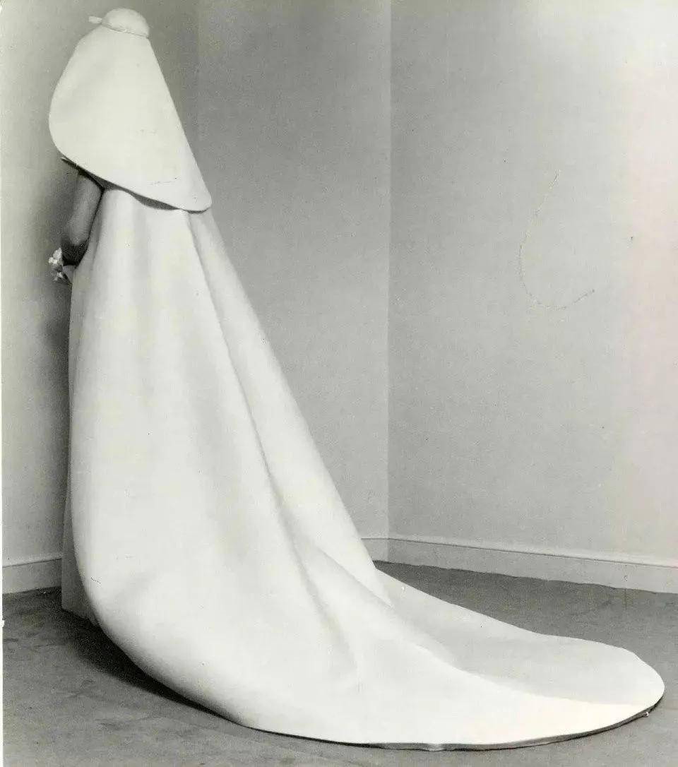 婚纱致敬了Balenciaga先生正在1968年关停高定线时最初的作品,这件婚纱的出格之处就正在于整件婚纱是一整块布,并且就用了三处缝折线。