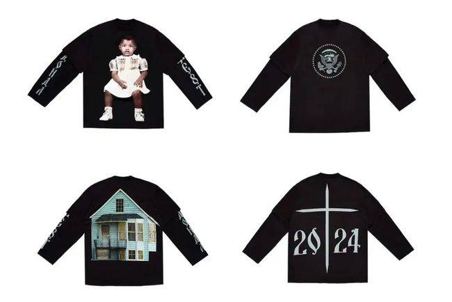 而随着今天新专辑《Donda》正式刊止,侃爷更是与BALENCIAGA创意总监Demna Gvasalia折作,推出一件印有儿时肖像战童年住屋子的T-shirt,一件印有“2024”的T-shirt,不少粉丝推测衣服上的“2024”大概是侃爷正在预报原人将参与2024美国总统推举。