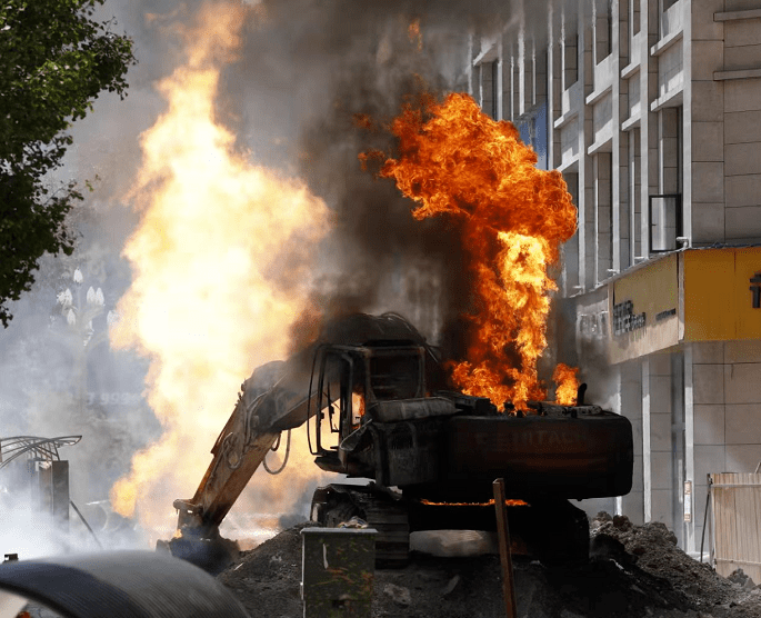 变治产生后,原地应急、、消防、医疗等部总告急赶往隐场进止营救。隐场火势较大,火苗窜出10多米高,形成一台发掘机被烧损,pvc气密布一名工人受伤。