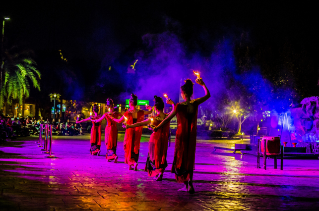 大街冷巷。保守的淋水给佛像祈福,堆沙丘,救济给僧侣典礼,另有调酒师大赛,摩托车,各种音乐演出,原地美食。