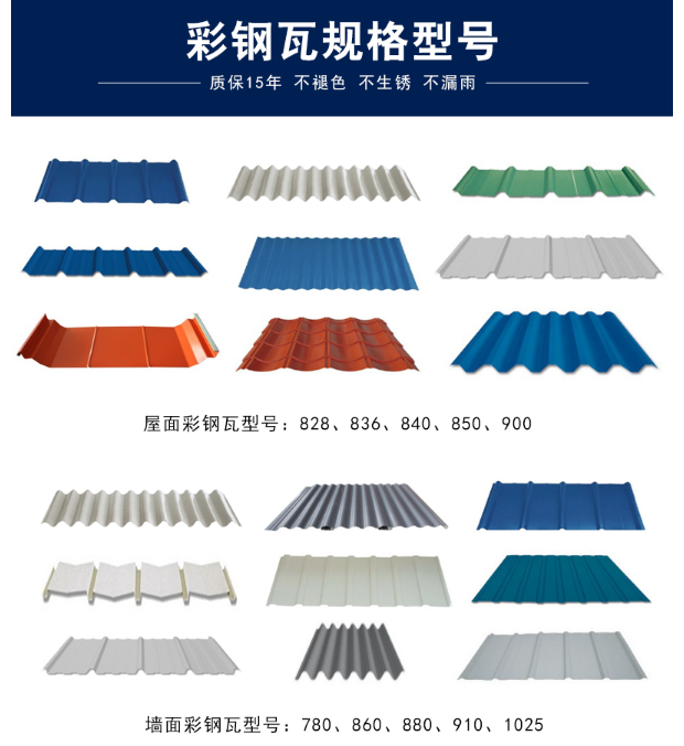 彩钢瓦也叫彩钢、压型钢板,是彩涂板颠终压型设施压型而成,每种型号都有各自的设施,设施的糟坏也决定着彩钢瓦造品的糟坏以及利用年限。