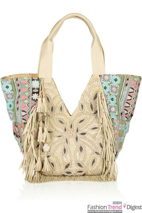 Antik Batik 的这款皮革战编织棉布“Nana”手提包涵质丰裕,足可支纳休闲度假时的必备用品。虽然尺寸较大,这款饰有源苏战串珠的手提包质地却极其轻巧,轻而易举即可置入止李箱中。下次度假时,没关系将它用作沙岸包。