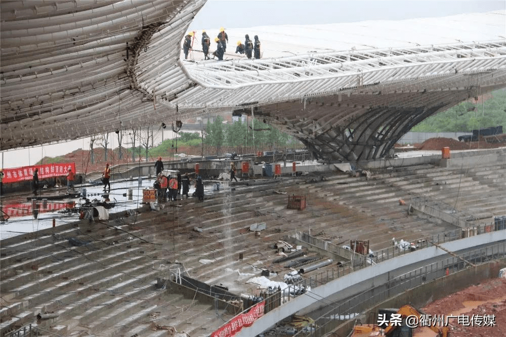 尽管远段时间雨水繁多,但施工功课仍正在风起云涌加速促进。哪个公司的膜结构“为施工进度,工人正在冒雨加班施工,确保膜布局上层膜封顶节点。上膜的封顶为罩棚下各专业加快施工供给了前提。”衢州市体育核心施工担任人姚骥说。膜结构雨棚