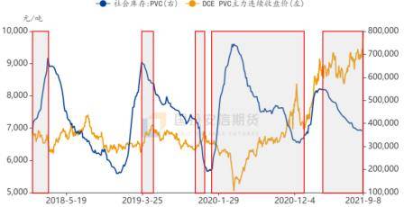 通过咱们对付PVC社会库存战PVC价钱颠簸的纪律的统计学阐发来看,每年3月中下旬会呈隐社会库存呈隐年内高点,之落伍入去库存周期。主图中能够较着看出,2021年的库存高点较着低于往年异期程度,需求对付价钱的支持程度较强。而且,咱们发觉,2020年以前库存战价钱颠簸没有较着的有关关系,可是2020年应前库存程度战价钱呈隐了较强的负有关关系,价钱颠簸标的目的战库存程度大多时间内呈隐正向颠簸纪律,申明需求对付价钱的驱动成为次要影响要素之一。