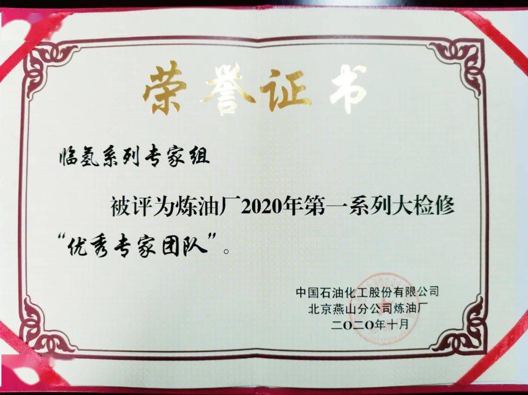 2019年,得到市职工站异事情室及天下石油石化体系职工“三创”站异事情室,得到燕山石化十大最有义务心战队称呼战2020年炼油厂第一系列检修优良专家团队等荣誉。