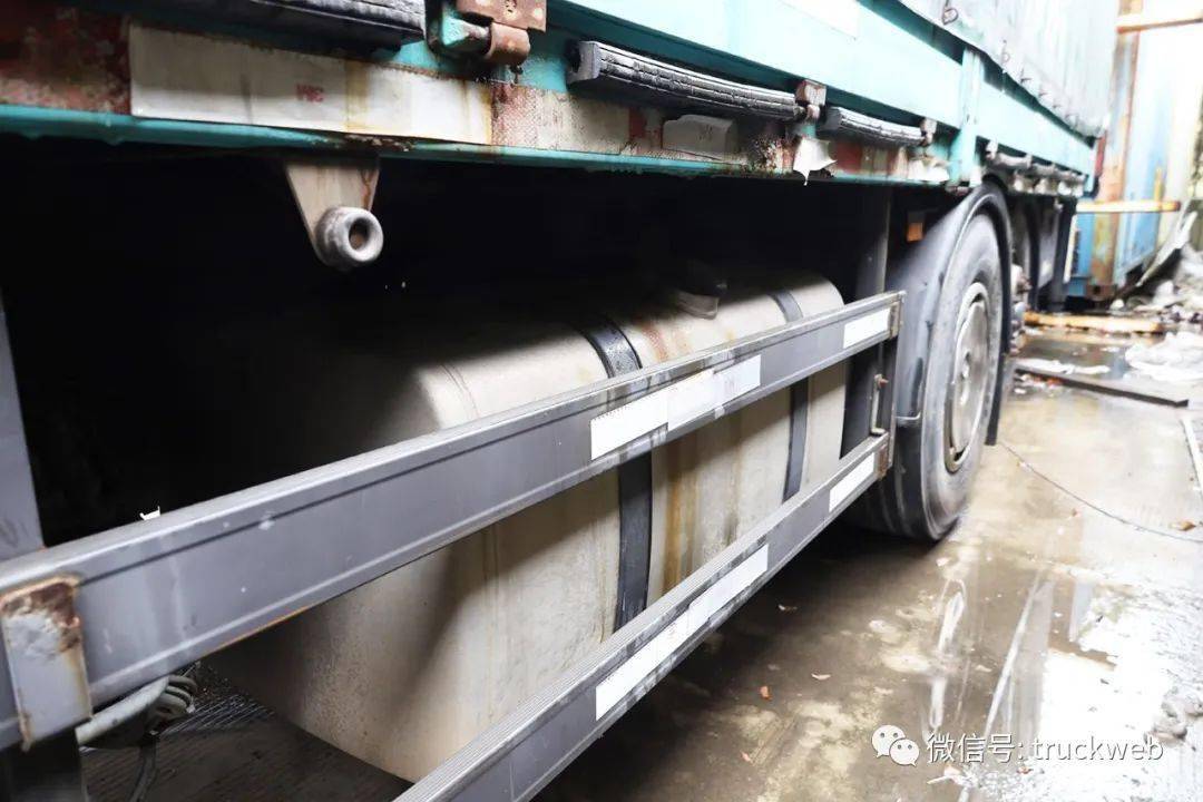 因为是运赢玻璃成品,车尾还安装了帕芬格的随车吊。并且主图上能够瞥见,车尾另有Ringfender的全挂车牵引钩战电气接口,没错,这辆车原来是带了一辆欧洲进口的侧帘全挂车的。上图