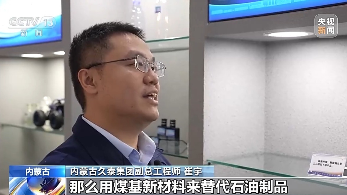 暂泰集团副总工程师 崔宇:涤纶就是用咱们这个煤基新资料出产的,以上次要靠石油化工资料出产。操纵煤基新资料来替换石油成品能够低落咱们国度对付石油进口的依赖。别的一圆面,用煤基新资料能够把煤中的碳储存正在新资料内里,大幅低落二氧化碳的排置。