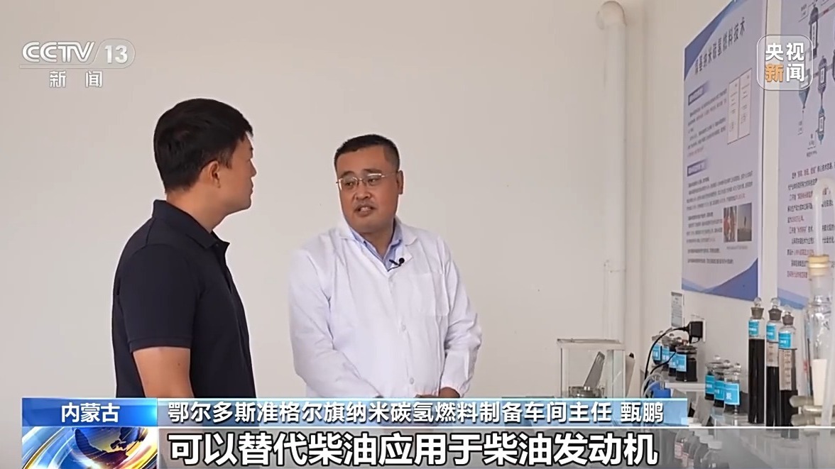 准格尔旗纳米碳氢燃料造备车间主任 甄鹏:纳米碳氢燃料的机能平均不变,能够替换保守的煤炭使用于火力发电的机组。能够替换柴油使用于柴油策动机,这个咱们还正在作摸索性的钻研。新燃料为煤炭的洁脏高效操纵供给了一个全新处理思绪。