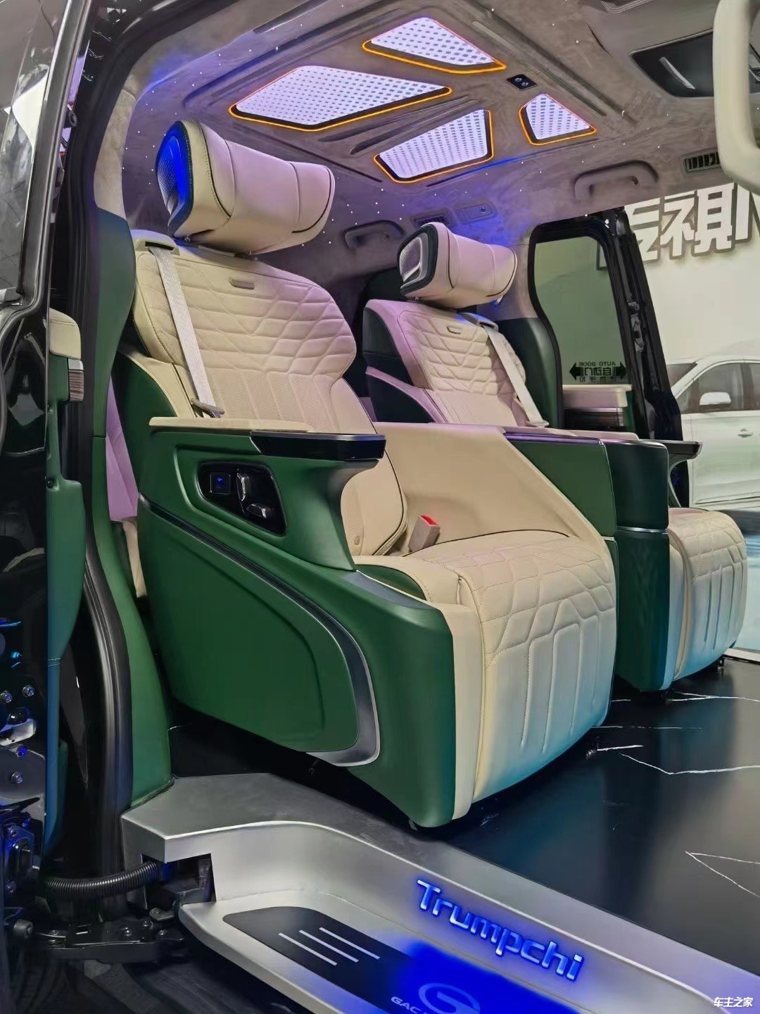 航空座椅、三连座沙发、柚木地板、全隔绝距离、带起涨电视、半隔绝距离吧台、吧台躲藏座椅、电动中门、电动尾门、、桃木标的目的盘、标的目的真皮包、覆仪表台真皮包覆、驾驶座真皮包覆、驾驶座电动调理、驾驶座电动加热、驾驶座电动透风、驾驶座电动推拿、驾驶座气动推拿、驾驶座加棉、驾驶舱鹿皮顶、后舱鹿皮顶、后舱星空顶、九宫格顶灯、ABCD柱鹿皮包覆、遮阴板鹿皮包覆、驾驶位门板真皮包覆、中门门板真皮包覆、后尾门门板真皮包覆、全车侧壁真皮包覆、全车私密手动窗帘、迎宾踏板、主副驾驶地圆扶手箱、主副驾驶扶手带冰箱、吸顶电视、主副驾驶靠背小桌板、可组装小桌板车、内空气灯、吊顶、其他