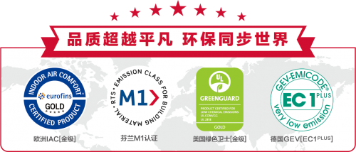 异时,美巢坊水固还严酷节造施工后产物的VOC战甲醛等有益物质质。这一系列的产物曾经全数通过了美国UL绿色卫士【金级】认证、欧洲Eurofins IAC【金级】认证、GEV【EC1PLUS】认证战RTS【M1级】认证。美巢也是国内率先全数产物通过世界四大严苛环保认证第一源尺度的企业,取舍美巢坊水固,争咱们可以或许拥有一个愈加康健、环保的栖身。