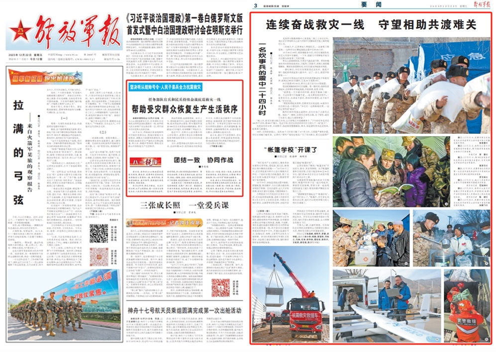 解置军报甘肃积石山12月21日电积石山6.2级地动产生后,使命部队官卒战争易远卒连续奋战抗震救灾一线,始终把人平易远生命财富平安置正在第一位,用步履书写对爱战人平易远的忠真。