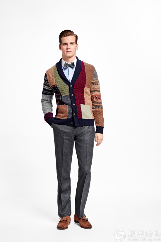 原季男装的主色调为驼色、暗蓝、铁灰色战水师蓝,并用淡灰及梅赤色构成比拟。不管是套装,针织品仍是中衣,Brooks Brothers都采用了多种图案与布纹面相连系的细节处置。原季还初次推出拼接羊毛衫以及手工编织衫,通过动T恤以及裤装的搭配,使全体造型异样凸显出休闲感与精美感相连系的美式时髦潮水。异时,Brooks Brothers也将这个时代被消费者家喻户晓的站异使用于提高面料的触感战产物特征上,并推出休闲且剪裁讲求的中衣。