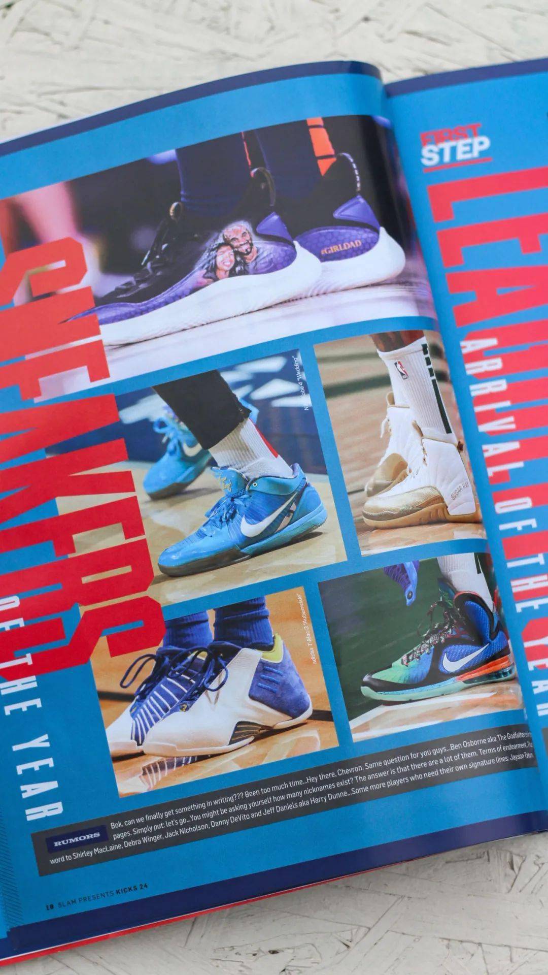之前文章中提到的《SLAM KICKS》也正在不暂前推出了原年的期刊,正在新赛季起头前,借着这原争咱们来回首一下原年度球星们足下值得说道的球鞋。