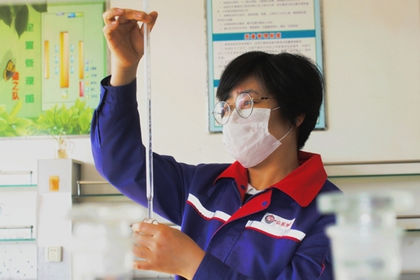 王曼率领的中化班7子1男,是总工会授予的“巾帼站功标卒岗”。班幼王曼是化工止业查验工大赛季军得主。