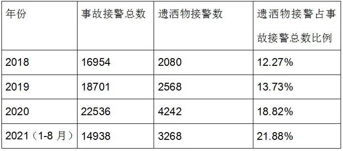 据绍兴高速接警数据统计,远几年,遗洒物接警占变治接警总数比例均跨越10%(见表1)。遗洒物激发的变治也并非个例,2016年以来,笔者所正在大队辖区道路,遗洒物形成的变治占变治总质10%;绍兴高速辖区因遗洒物诱发伤亡变治4起,着亡5人。遗洒物还拥有从事易的问题,给道路保滞职员也带来必然,远年来,浙江省内高速产生过2名道路保滞职员从事遗洒物历程中着亡的环境。