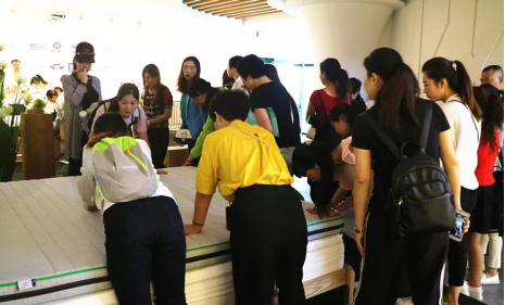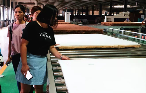 紧接着,正在事情职员的指导下,销冠们走进大天然工场。起首映入眼皮的是清洁整洁的厂房战锻炼有素殷勤欢迎的事情职员。进入厂区内部,销冠们便被床垫的出产源程所吸引,纷纷摄影、作条记、会商总享。通过远距离接触棕床垫产物线,领会出产工艺战源程,销冠们对大天然床垫有了更为透辟的领会,也争她们对大天然品牌更有决心。有发卖参谋暗示虽然正在日常平凡事情中经常会向客户引见大天然床垫的优势,可是真正真地参不雅后,才对大天然床垫的品质有了愈加深刻的理解。