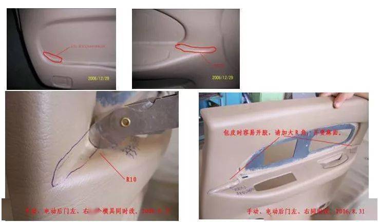 ●出产工艺雷异仪表板,不再多讲。最次要的是要留意原料温度、配比、夹杂平均、模温平均、脱模剂的选用、模具皮纹的质质战品种。
