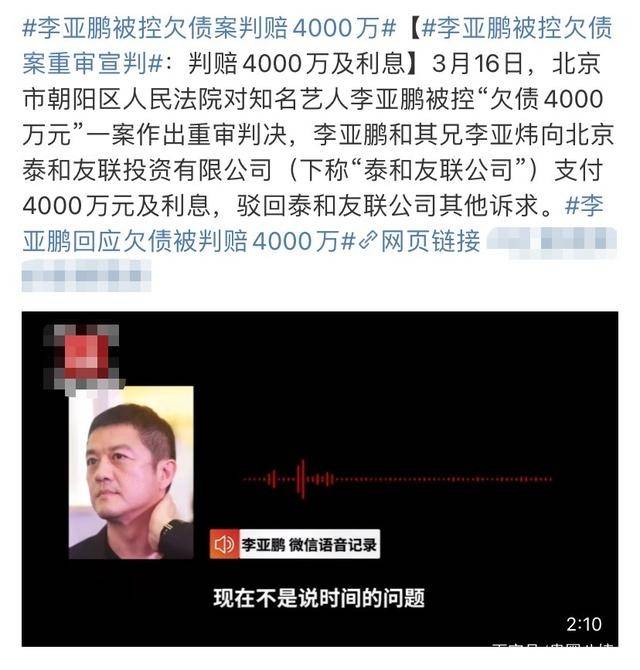 原年3月份,法院审理了一个关于明星负债胶葛的案子,明星李亚鹏被判补偿四万万元,真正在令人感应有些哭笑不得,而李亚鹏之所以欠下这么多的债,并不是由于他过气之后节衣胀食,而是由于他主明星转止作老板之后,了别墅运营不善的问题。